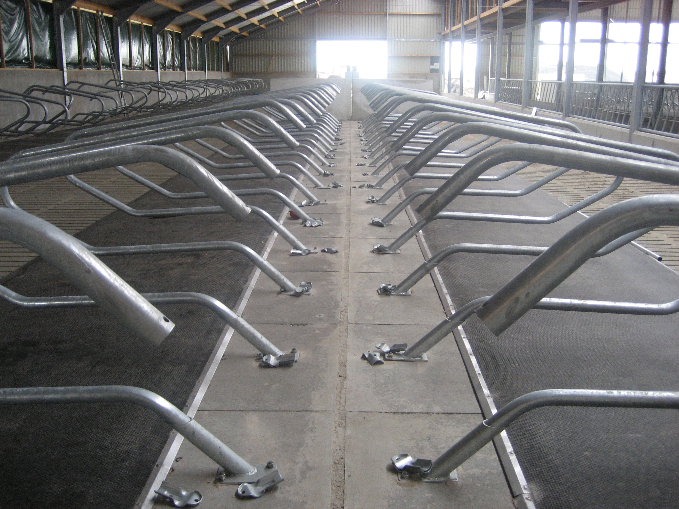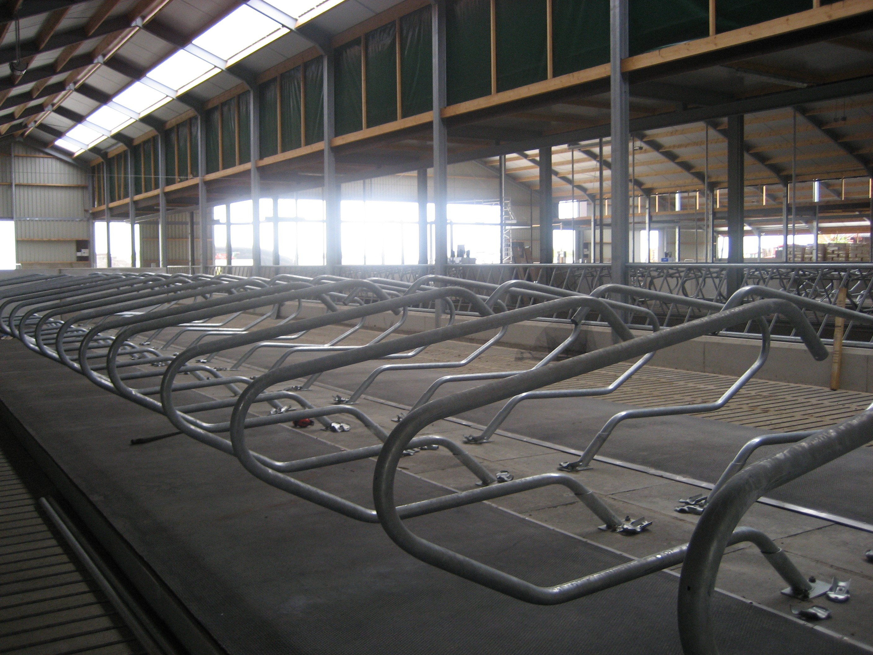 Koematras 22 mm dik met een uitsparing , topmat 11 mm en voorzien van een nylon inlage. Stalmat heeft achter een massieve rand van 20 cm voorzien van 7 groeven , die moeten zorgen dat er geen vocht onder de mat door kruipt . Tevens is de laatste 20 cm een schuine afschot van 3 % om vocht van de mat af te laten lopen. Voorkant 10 cm breed en ook voorzien van gleuven.